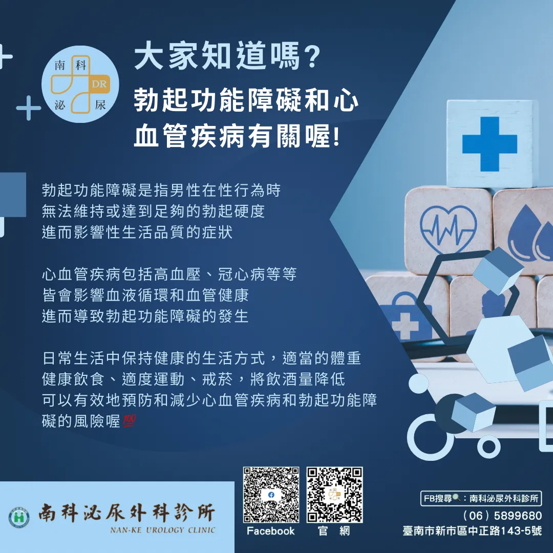 勃起功能障礙是指男性在性行為時 無法維持或達到足夠的勃起硬度 進而影響性生活品質的症狀 心血管疾病包括高血壓、冠心病等等 皆會影響血液循環和血管健康 進而導致勃起功能障礙的發生 日常生活中保持健康的生